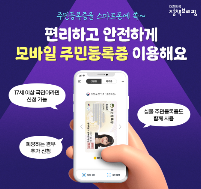 - 신청: 읍·면·동 주민센터에서 모바일 주민등록증 발급 신청.