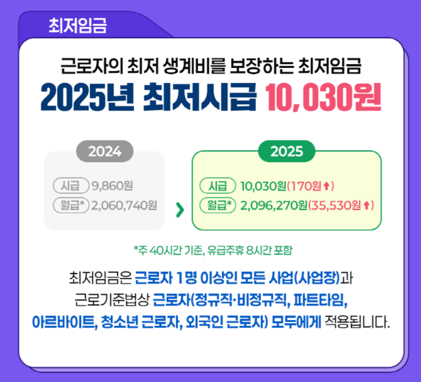 1. 2025 최저시급: 시간당 10,030원으로 인상