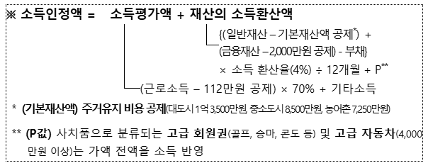 - 소득평가액: 근로·사업·연금 소득에서 일정 금액을 공제한 후 산정
