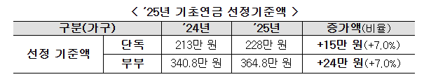 2025년 기초연금 소득인정액 기준