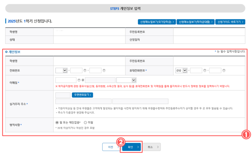 ✅ Step 3: 신청서 작성 및 정보 입력