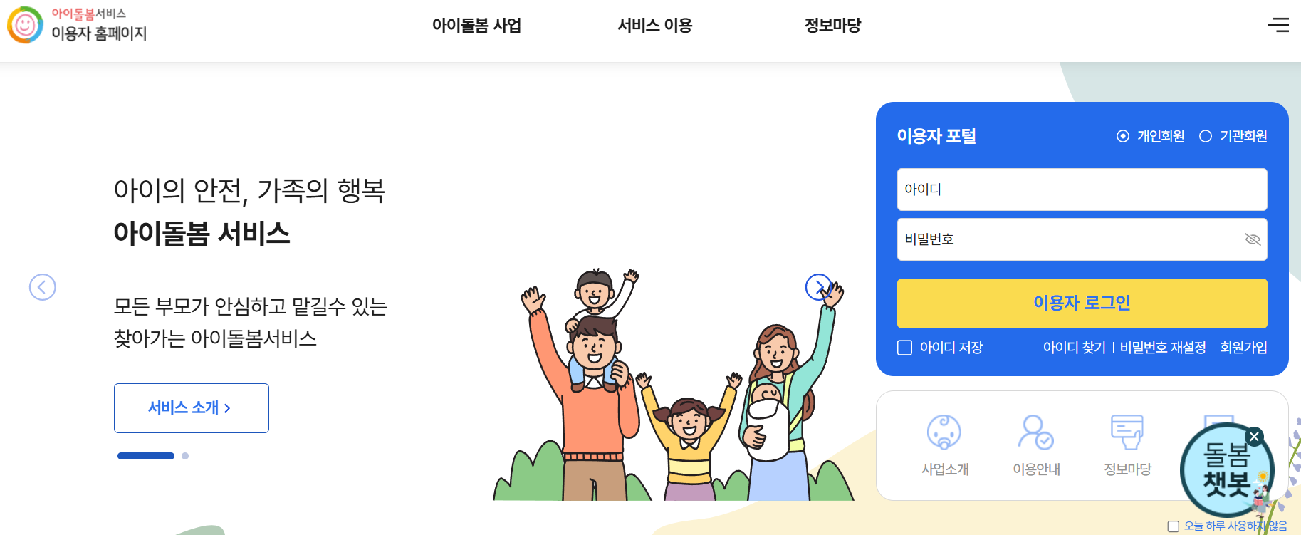 아이돌봄서비스 공식 홈페이지