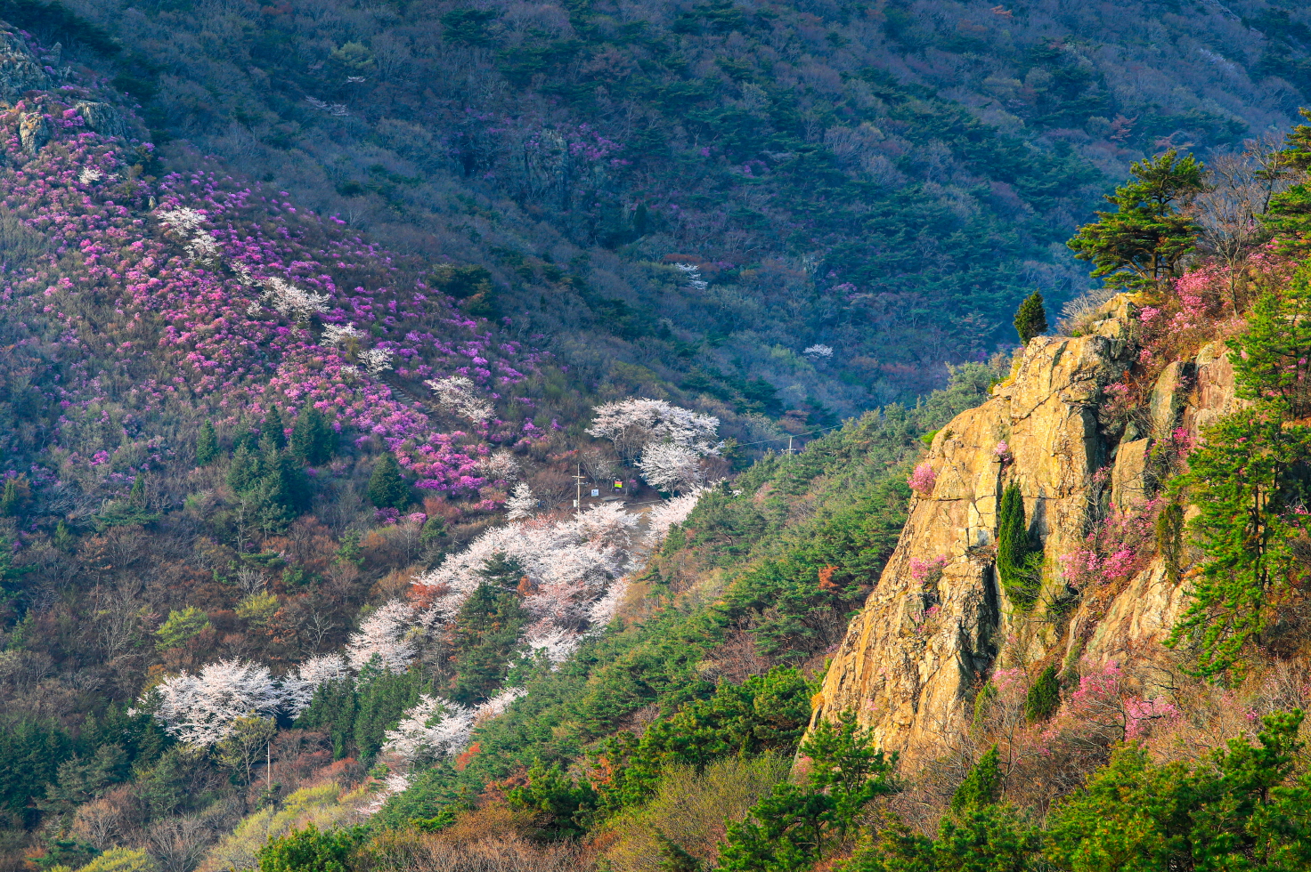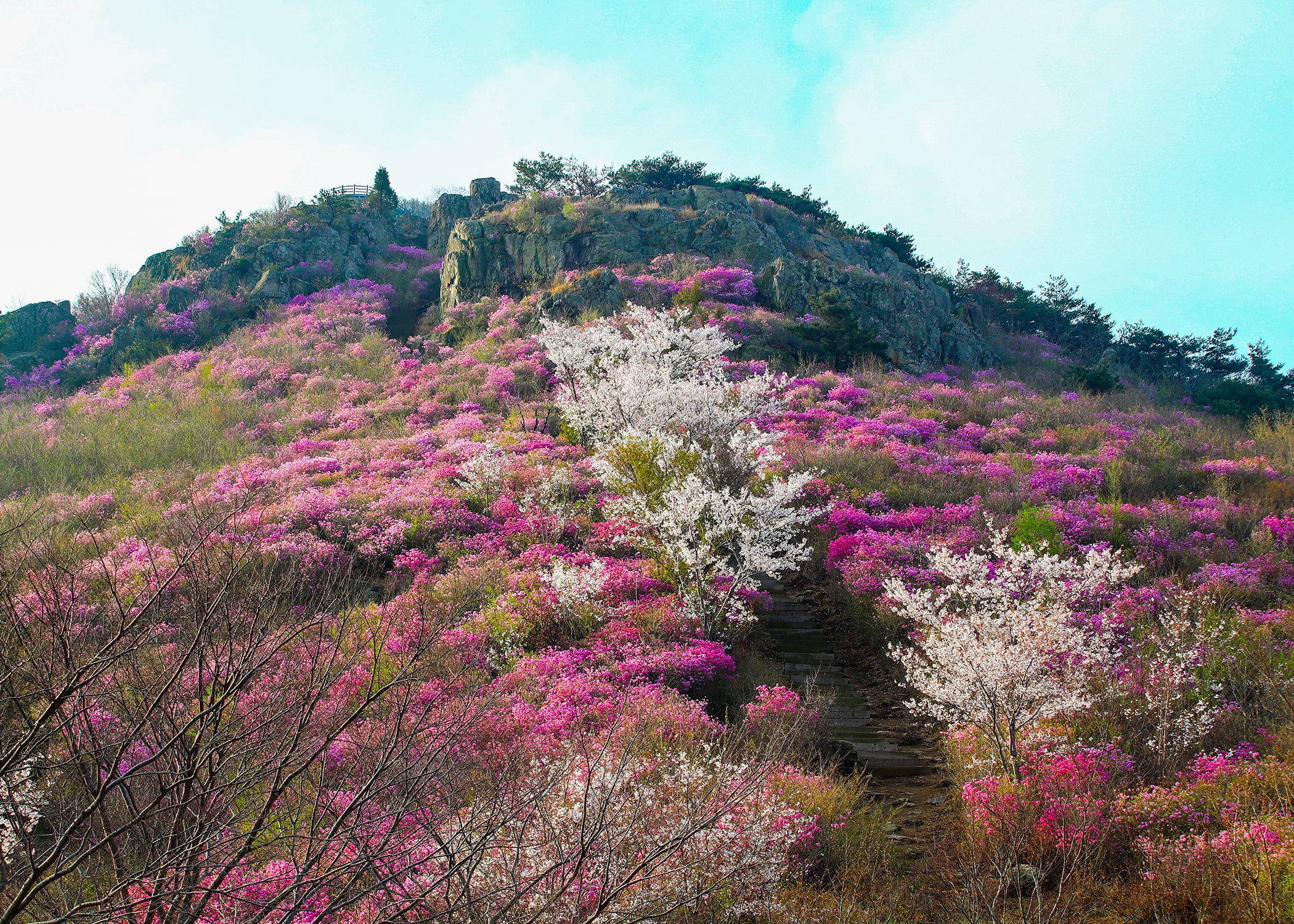 ✔ 진달래 군락지 포토존 – 핑크빛 바다 같은 인생샷 스팟