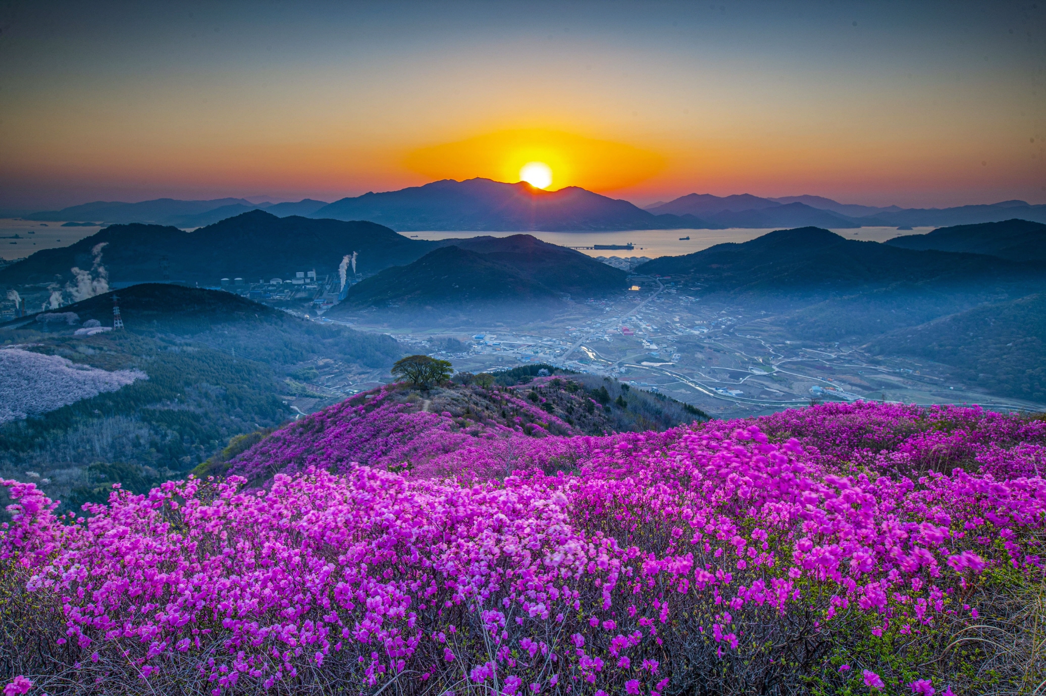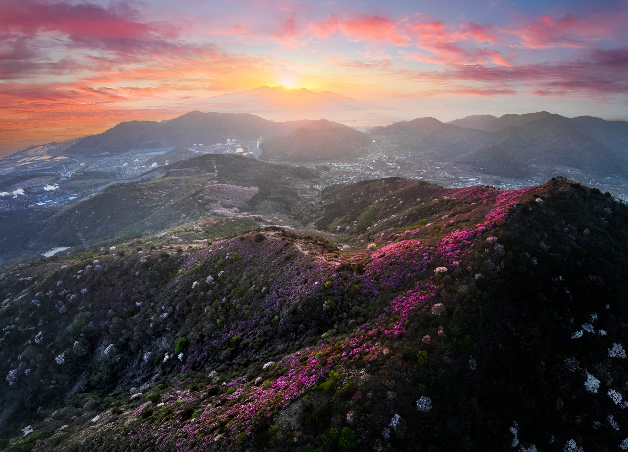 ✔ 영취산 일출 포인트 – 새벽 등산 후 진달래 사이로 떠오르는 해를 감상하는 명소