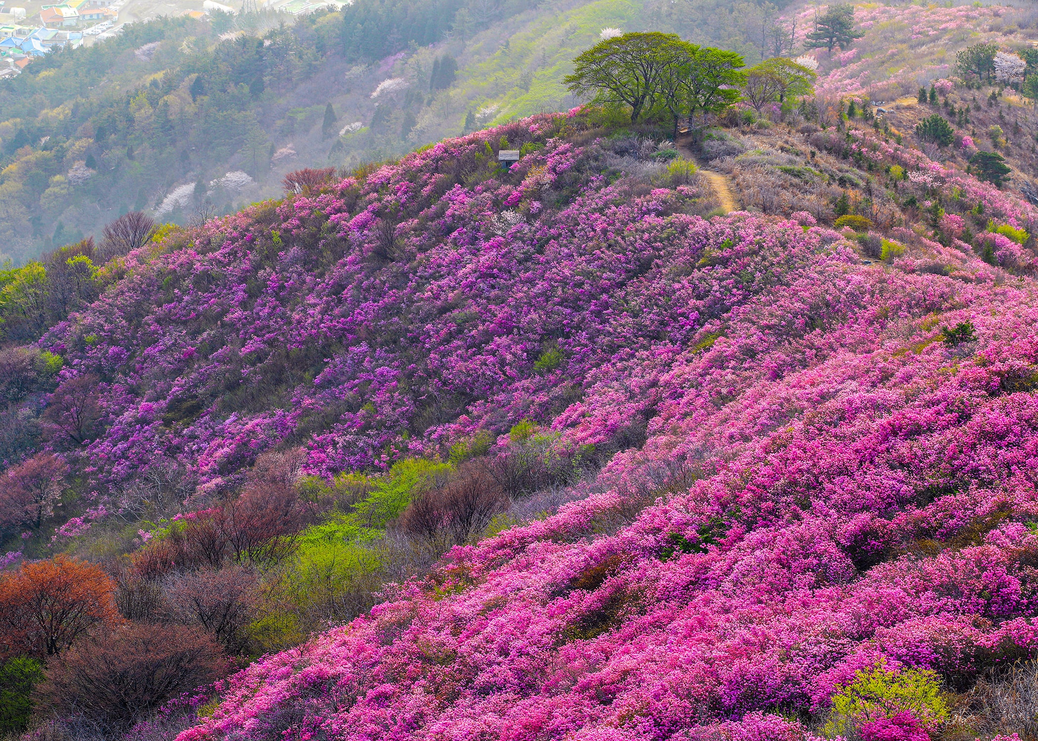 ✔ 진달래 군락지 포토존 – 핑크빛 바다 같은 인생샷 스팟