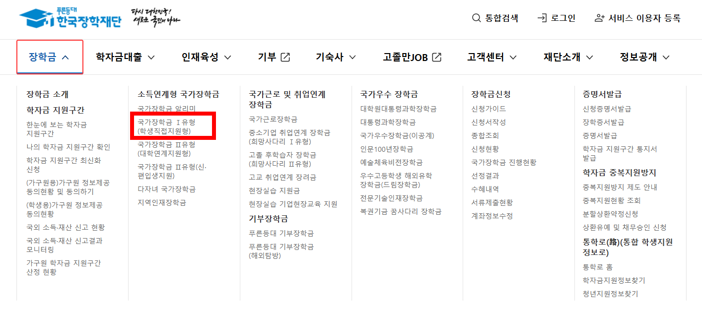 - 한국장학재단 공식 누리집 접속 후 회원가입 및 로그인.