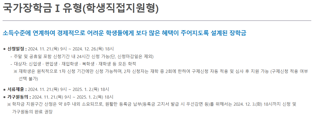 - 목적: 경제적으로 어려운 학생들에게 학업 기회를 확대하고 등록금 부담을 완화.